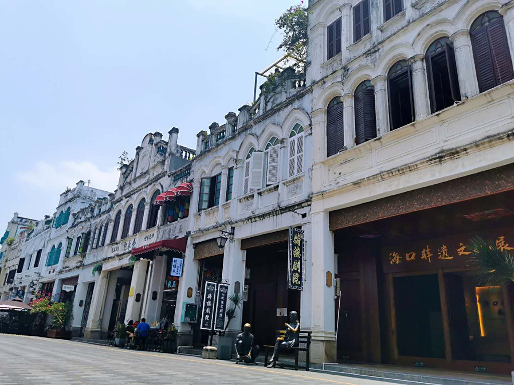 晚清时期,海口是当时全国十大对外开放的口岸之一,许多海南人为求一份生计、一番事业远渡南洋,“下南洋”的中国人凭借勤奋努力,改变了所在国的落后面貌,也改变了自己与家族的命运,东南亚先后出现了数以百计的华人富豪。他们功成不忘报效家乡,老街上的多数骑楼是由华侨修建。一楼是店铺,二楼以上是人们居住的地方,这部分向外探出,就像骑跨在人行道上,所以叫做骑楼,甚至连造房子的水泥都是从南洋运回来的。如今,络绎不绝的游客来到老街,了解海口的风土人情,品尝传统的海口美食,聆听到海口的沧桑巨变。沧桑的老街也告诉着往来客们,曾经这里是海口最繁华的地方