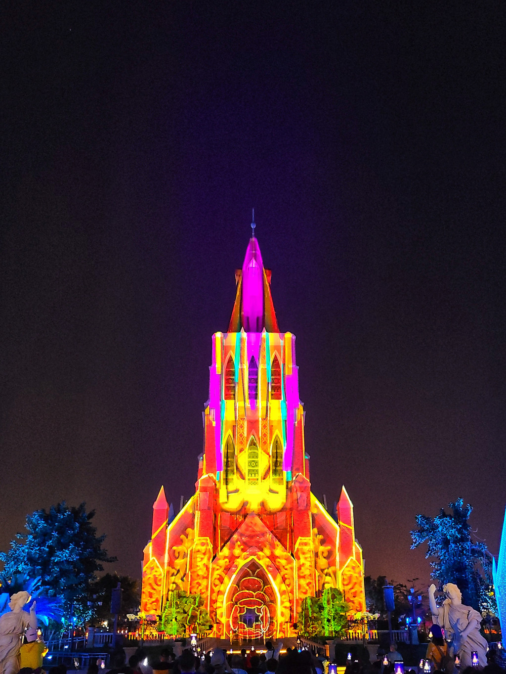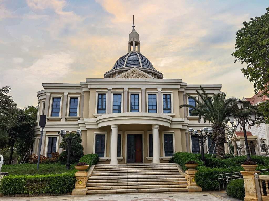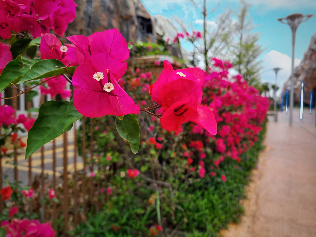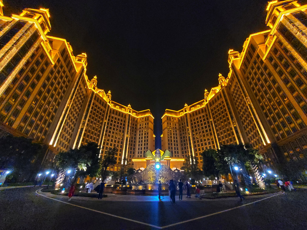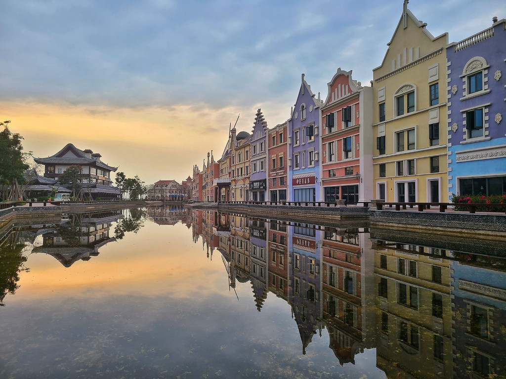 抵达当天下午:风情三条街区:珍奇特色植物园+婚礼庄园+风情商业街,晚餐在风情饮食街,之后观赏希尔顿酒店灯光秀。