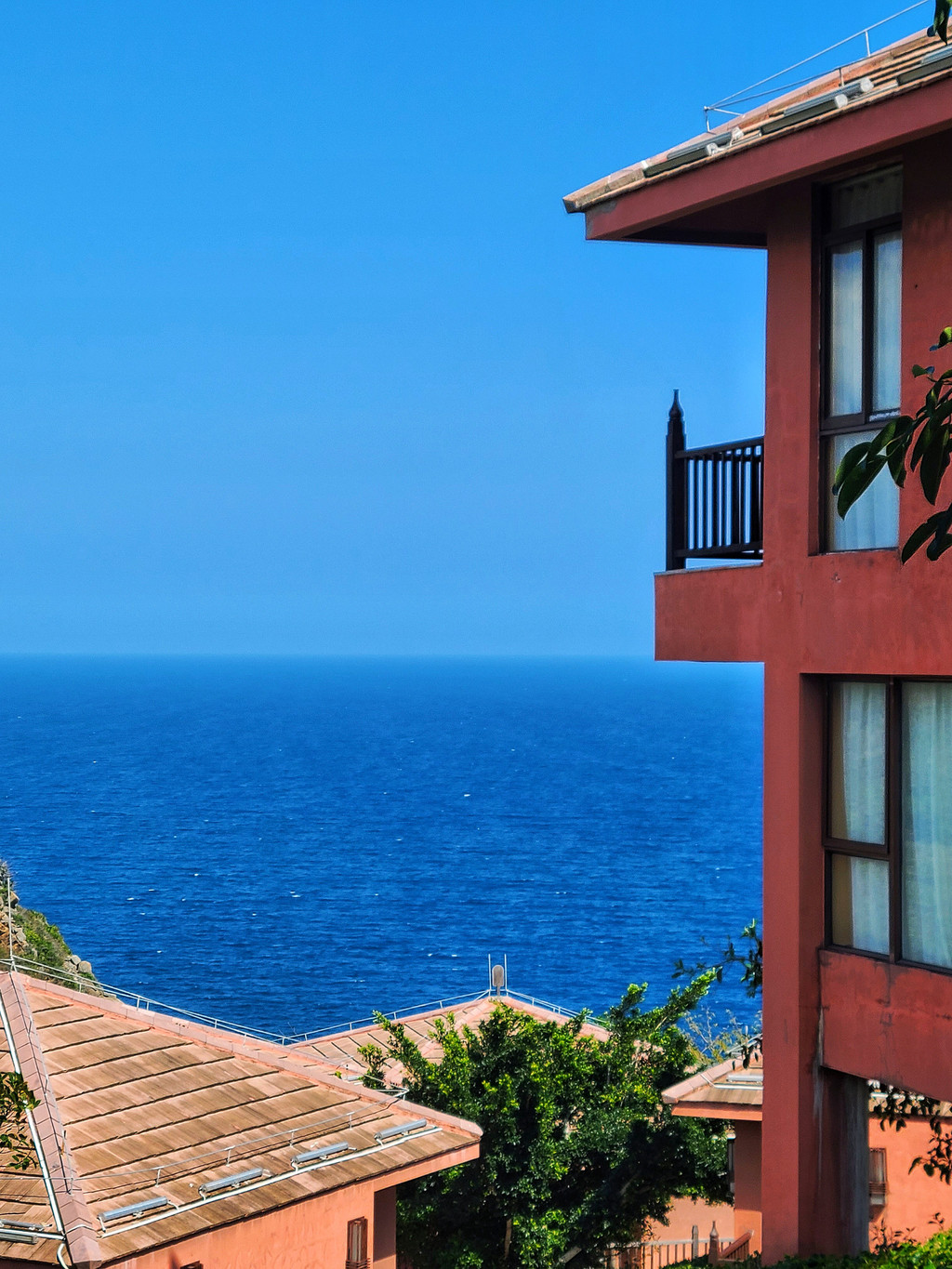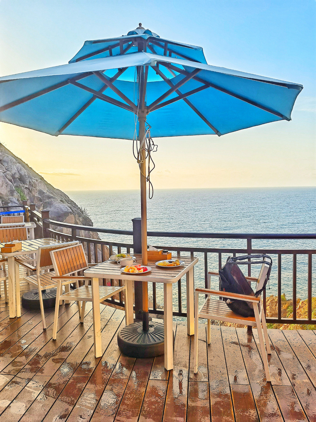 观海阁,可惜不让提前选定房间,抵达时已没有二层房间。推开阳台门,面朝大海,阳光照耀在海面上波光粼粼,海风拂面,倾听着海浪拍打礁石的耳语,满满的度假feel。爱了爱了!