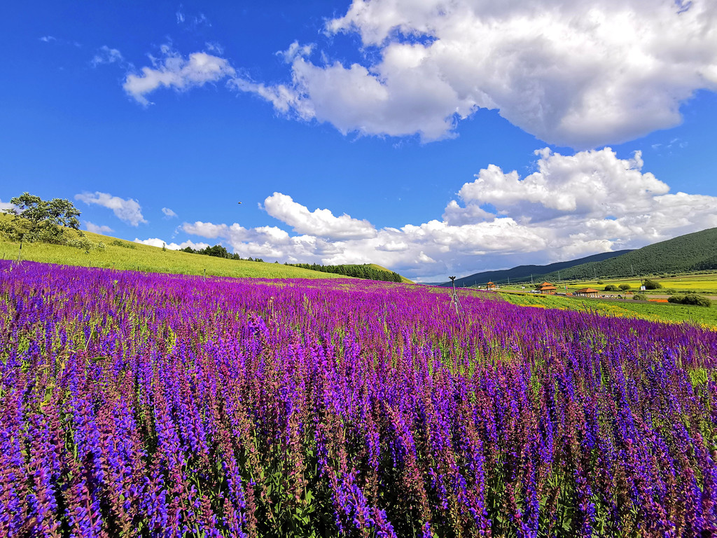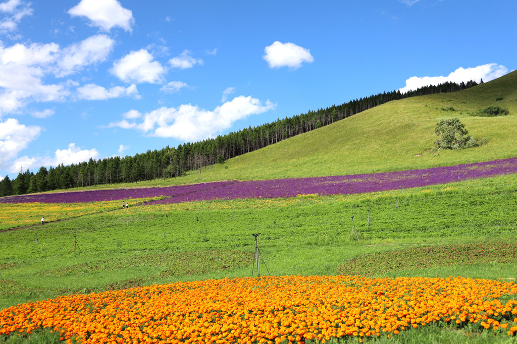 迷恋于阿尔山入口处花海漫山遍野,油菜花金灿灿羞羞答答、薰衣草微醺随风起舞,鸟儿欢快的大合唱夹杂着昆虫呢喃鸣叫之声:“欢迎欢迎,我亲爱的客人,梦幻阿尔山等候你们的到来。”