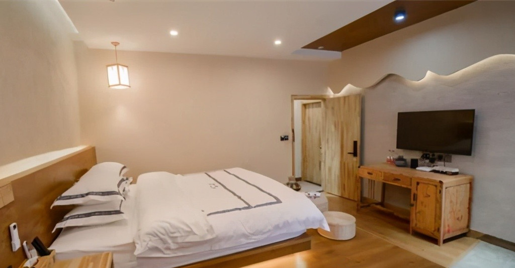 智能山景住宿环境,拥有风格各异的客房,隐藏在两栋民居建筑内,全区域采用智能设备,硅藻泥和木质材料造就温馨的入住环境;夜晚在屋顶的玻璃平台看看星空或品一壶好茶,生活的美味尽在于此。
