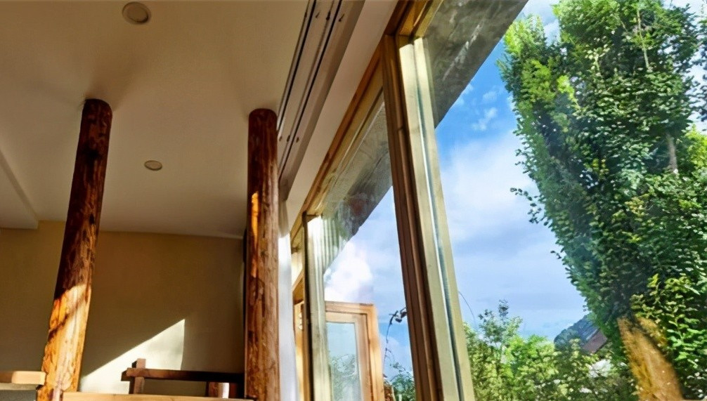 走进室内,环视整个大厅,落地的窗户将外面的景致一览无余,海螺沟之美在这里没有了边界,远处的青山,近处的野花,毫不掩饰地落入眼帘。