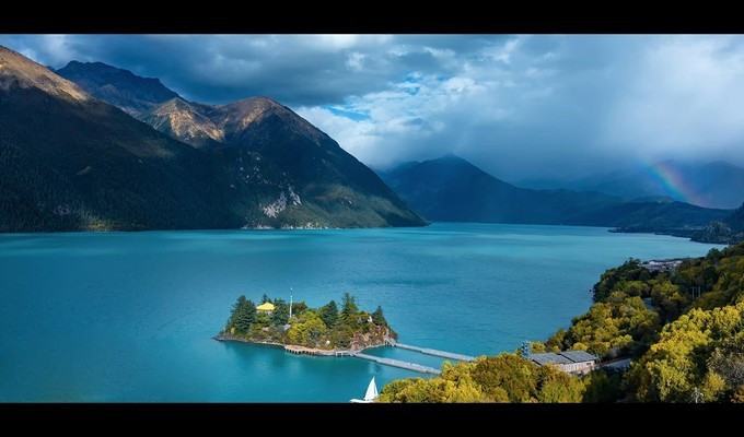从大峡谷一路走来,海拔开始有所降低,进入到“梦幻之境”,然乌湖随着光线温度一路都有不同的颜色变化,岩石和小岛点缀其间,树影婆娑,薄雾弥漫。