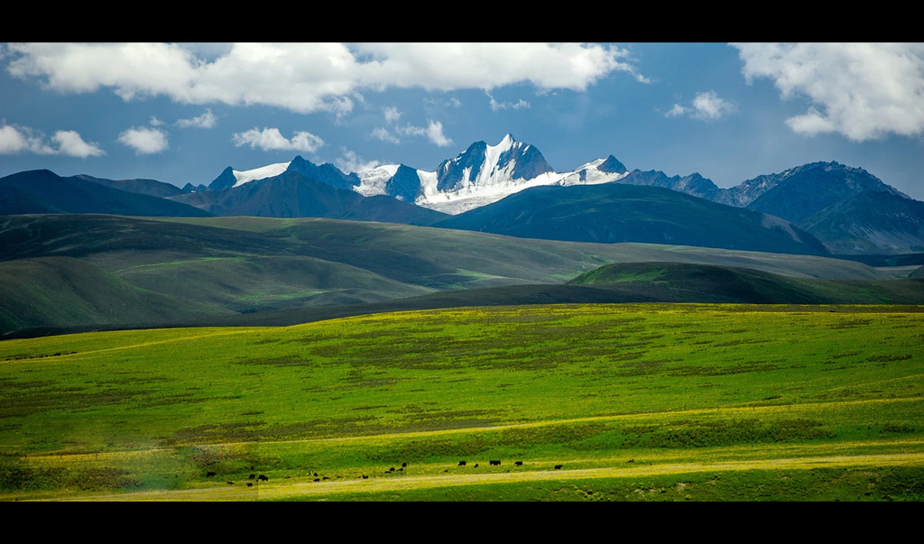 在终于抵达一片相对平坦的草原之前,我们顺着天路十八弯攀升到四千多米的海拔高度,翻过了剪子弯山,一阵目眩神迷的体验终于结束。这里有大片的草原和冷杉林,牛羊成群,云雾缭绕来的恰到好处,呼吸也顺畅了些,在四千米的高度上逐渐适应。