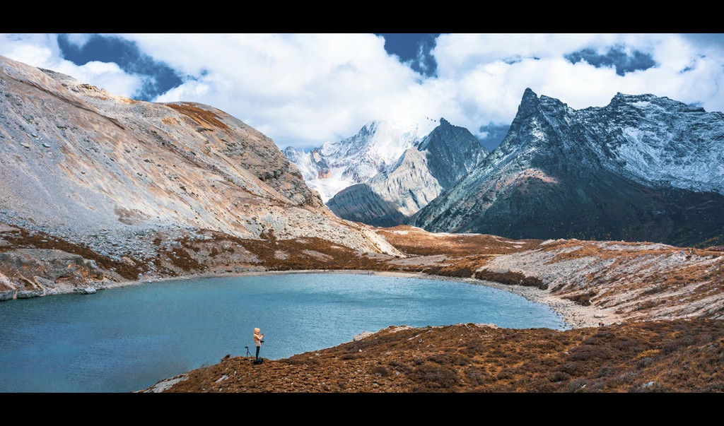 过了毛垭,就到了海子山脚下,海拔在4500米以上,很容易出现高反,不过,整趟旅程就是注定和高反抗争的,被一路景色不断冲击的视觉体验,也变得更加值得,拐过海子山,两颗蓝宝石一样的湖泊,静静躺在山脚下,这边是姊妹湖,峰回路转的感受也被珍藏进行程中。