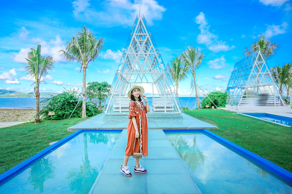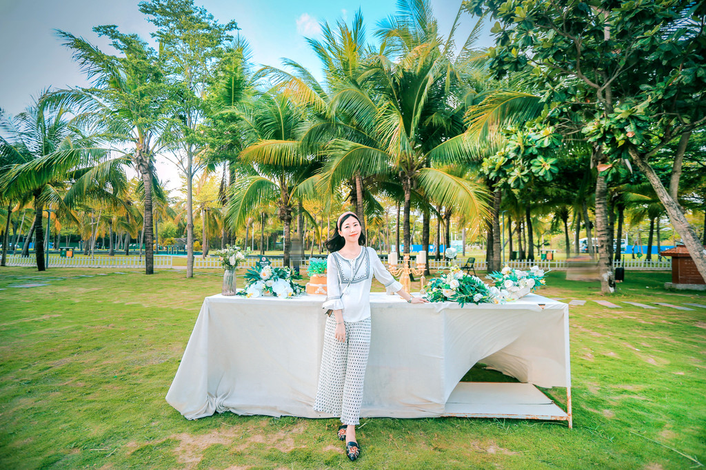 无论是在椰林当中,还是在沙滩上,都设置了许多好看的拍摄场景。