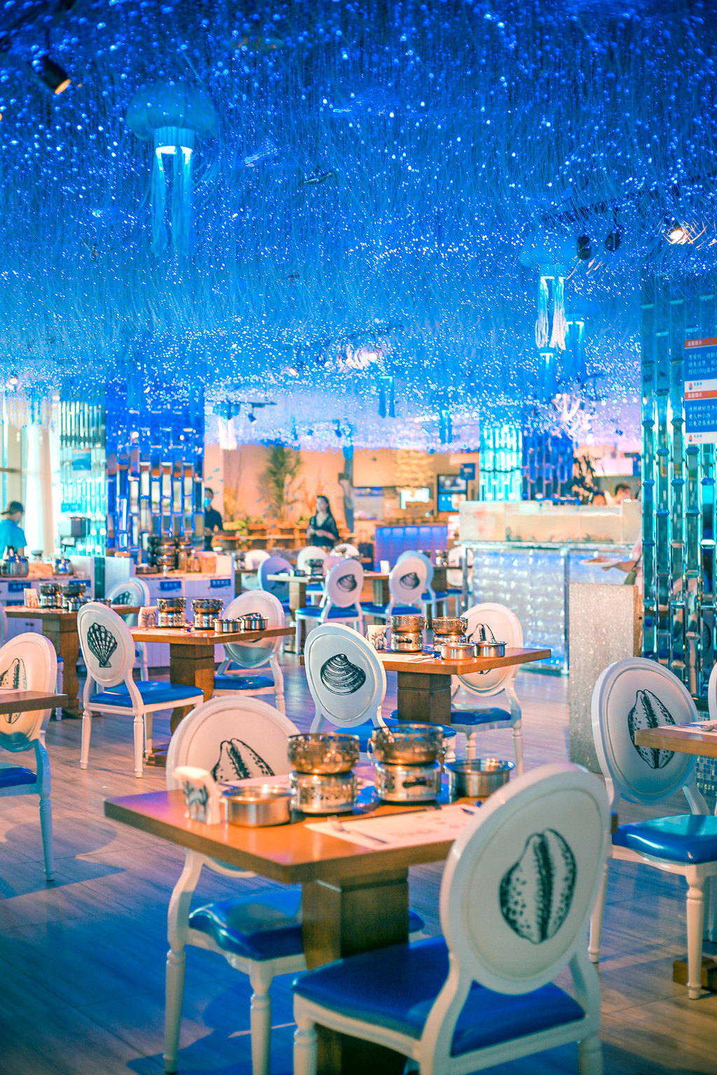 海景区的席位有限,比较抢手,如果预订的晚的话,就没了。不过靠里面的室内区域环境也很好,装潢非常好看,蓝色海洋的梦幻感深得少女心。