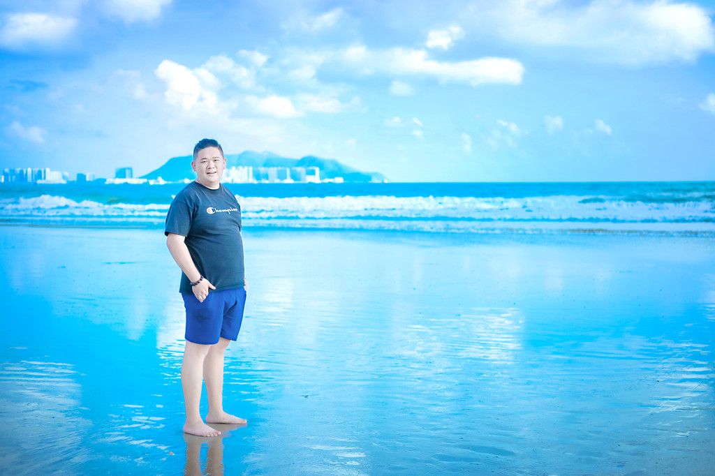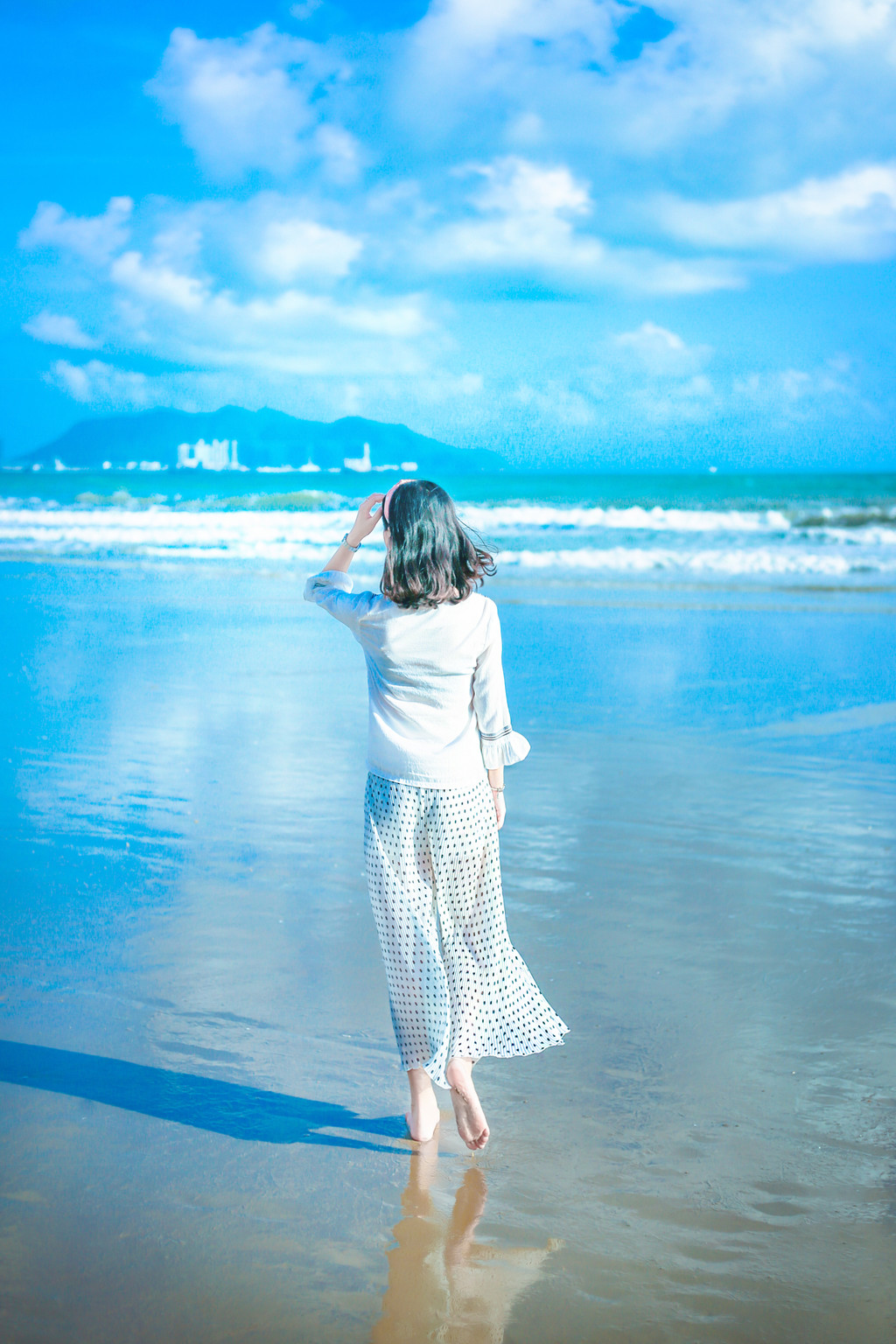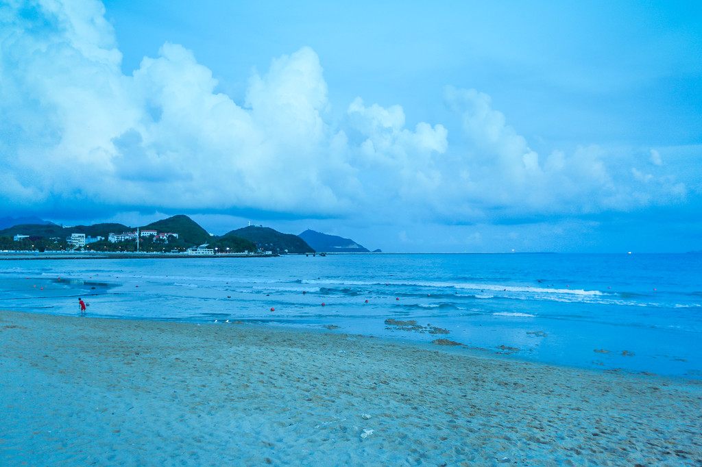 这一次,我提前查询好了攻略,在海之蓝海景公寓附近的这段海岸,非常好看。沙滩坡度平缓,光影绘就出天空之镜般的美景。大家要打卡 三亚湾 的话,建议去逛这一段。