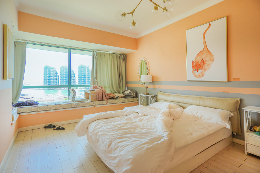 我们订的这套,一共有三个客房。其中最大的那个客房有超长的飘窗,可以直接看到海景。另外两个客房的窗户是和阳台连在一起的,也是可以看到海景的。
