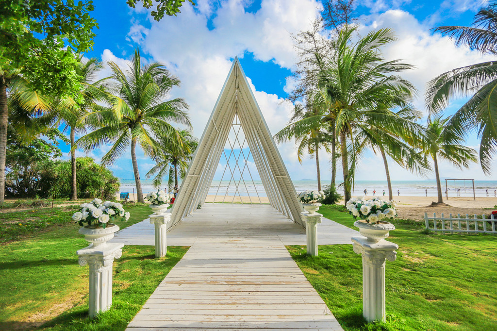 景观优美迷人的热带植物园林,与银色的沙滩、蓝色的大海相映成趣,组合成一幅色彩斑斓的美丽画卷。