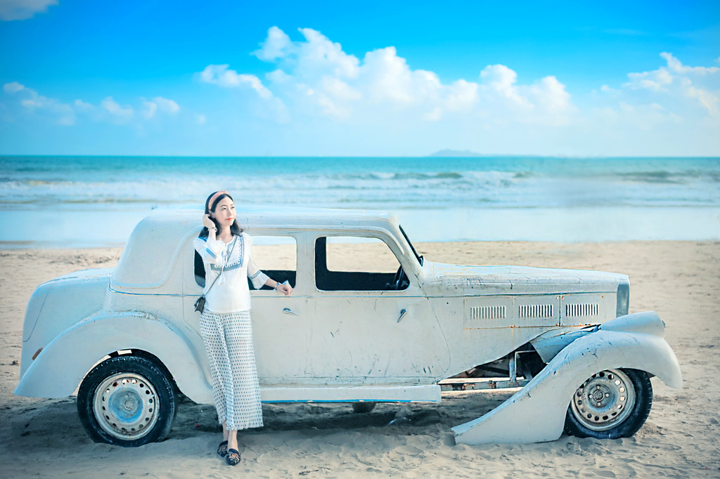 我们来到小 东海 摄影基地的时候,大约是下午四点左右,这个时候的光线还比较强,温度还比较热,拍摄婚纱照的团队也比较多。