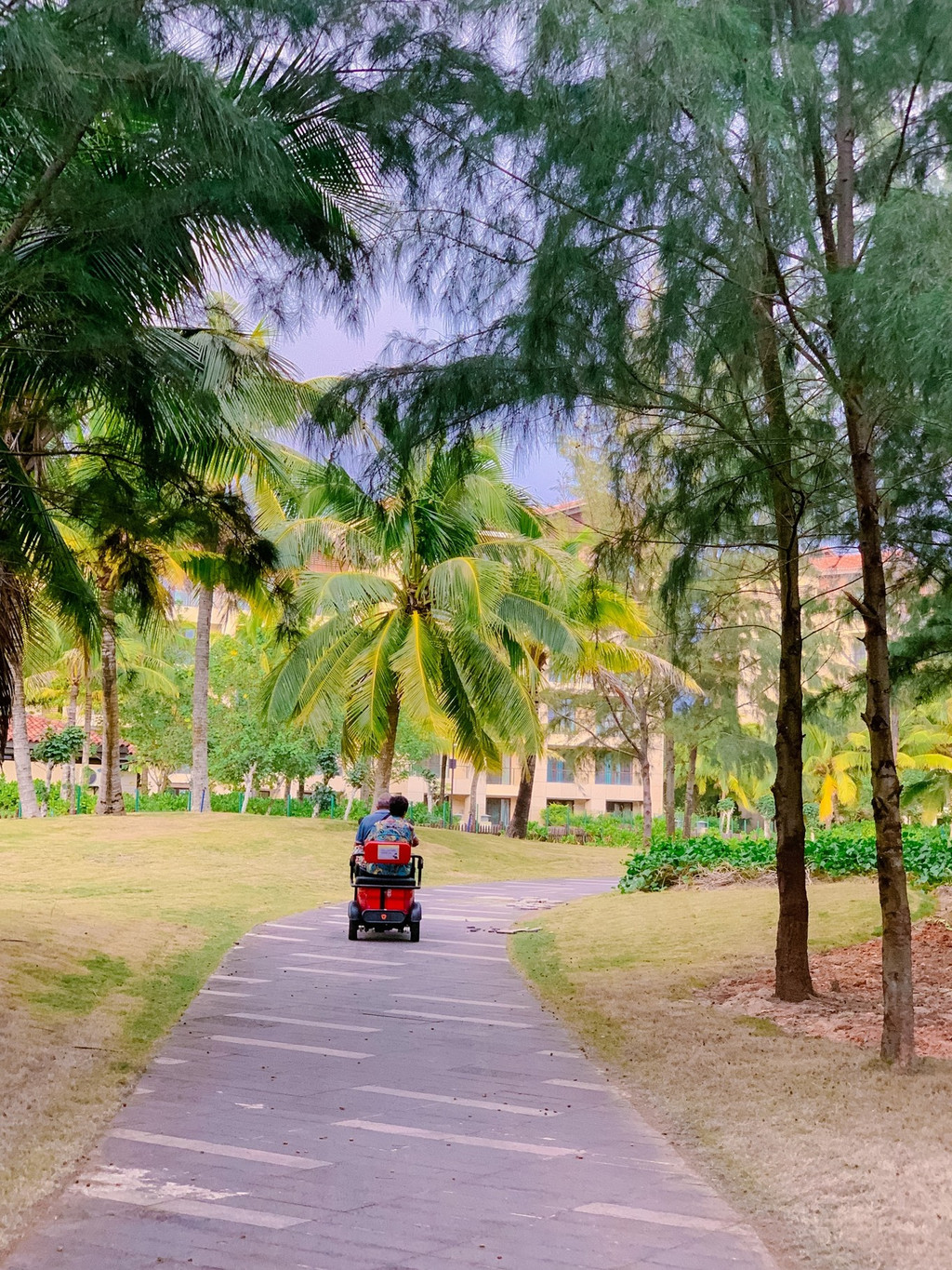 开到尽头我们才发现原来是 三亚 文华东方酒店,误打误撞就进入了人家的游玩区域,尽管工作人员不知道我们不是住在这里的,但还是很好指引我们下去的方向。不瞒你说,我们竟然在这里酒店看海私人区域玩了大半天。
