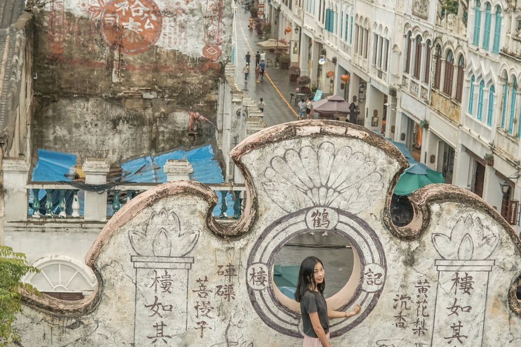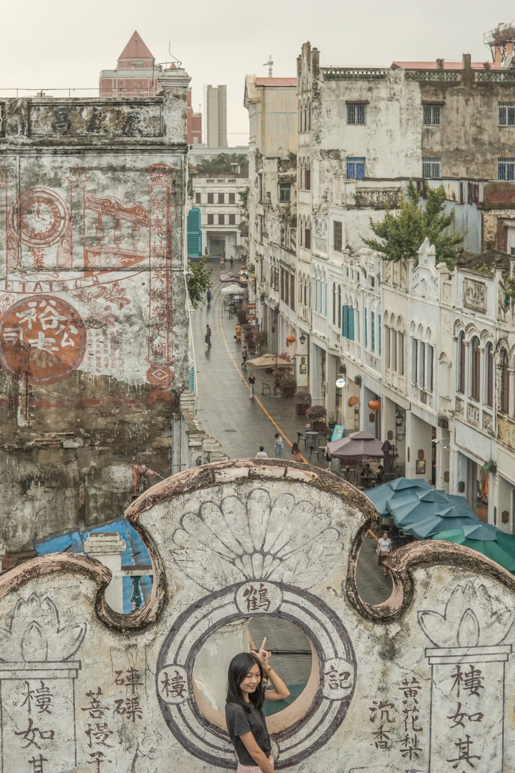 雨终于消停了一回,我继续穿梭下骑楼街街中,寻找不同俯视角度。根据我的攻略所得,还有两个角度在:国新书苑和见外民宿。