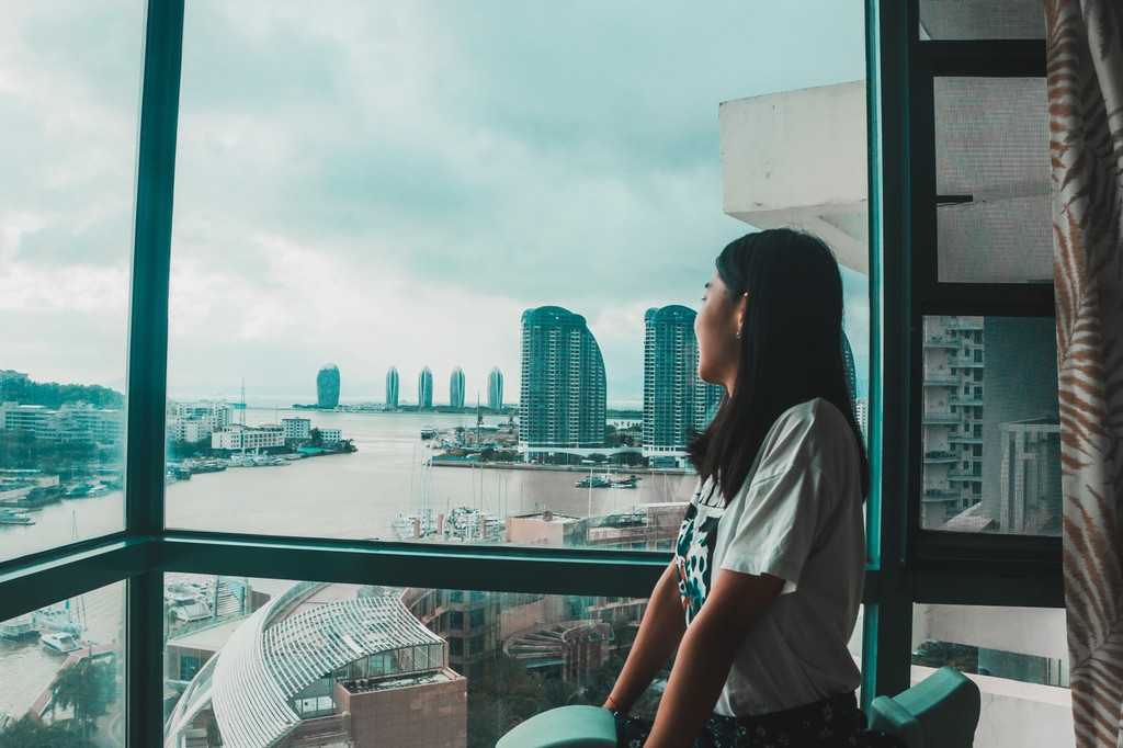 在某露台的看着海发呆的我,夕阳无限好,我却想只留这一刻