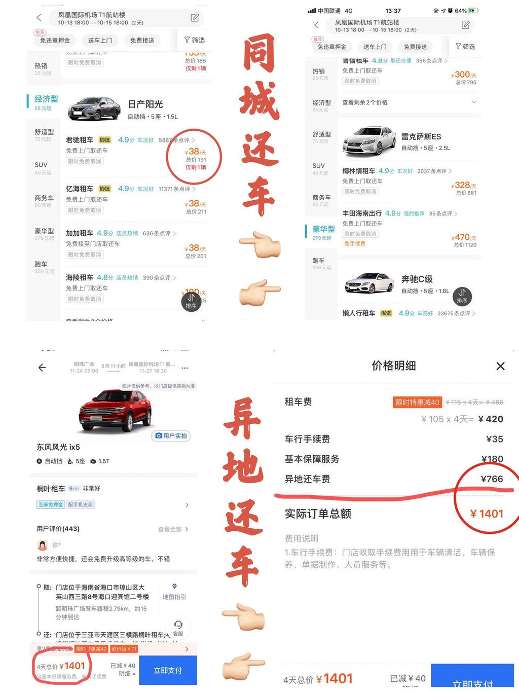 租车的异地还车费比较贵,加上油费+租车费,人均500元左右总共5天,我们临时提前1天租的价格上涨了不少,建议有计划可以提前落实下。