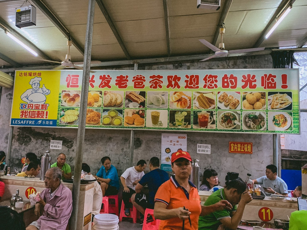 既然上天不让我认真逛,那我就认真地吃吧。常言说到,吃在 海口 ,叹在 三亚 。我就来寻一下 海口 的人间烟火美食。适逢是放学时间,摩托大军堵在马路路口,接小孩放学。幸亏我是用双脚寻找美味,避免一场拥堵战,寻寻觅觅,打卡第一顿:恒兴发茶店(十三店)