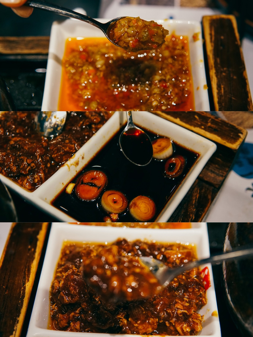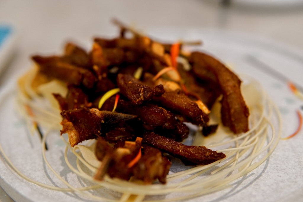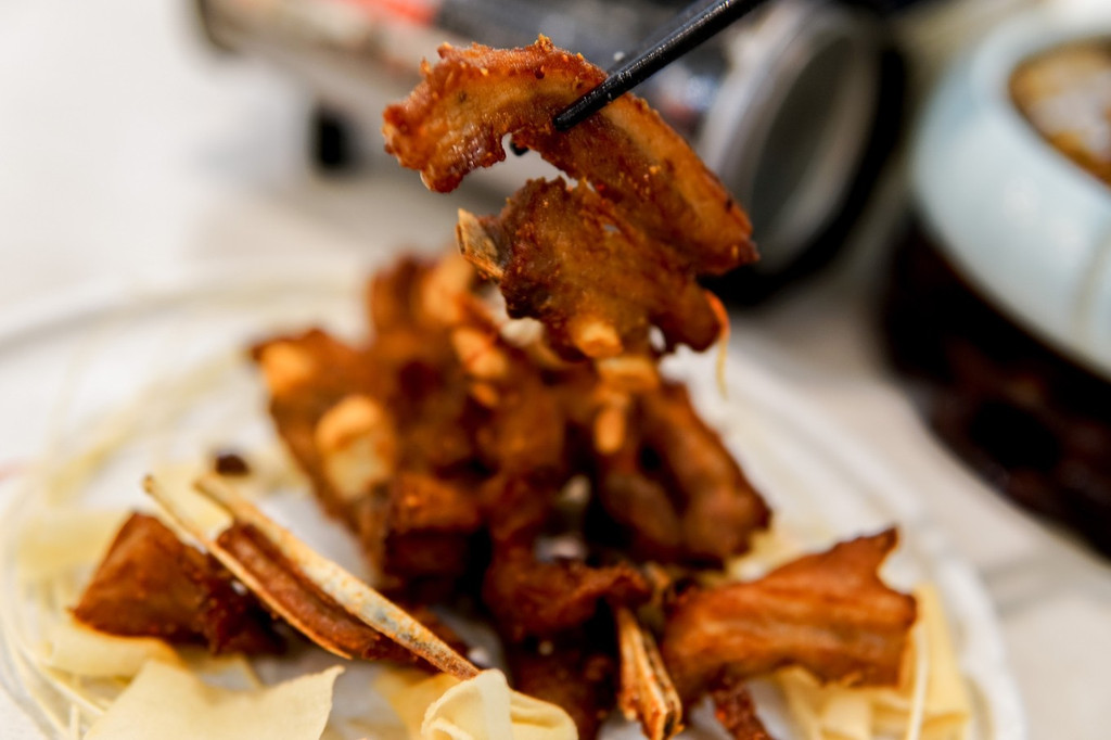 相比恒兴发茶店,旁边的小炸串店的人相对少了点,不过我们还是忍不住进去看看有什么好吃的。店里直接就是家和店铺合二为一,开店时间估计也很久了。为了多吃几顿的我们,没敢拿肉,只是拿了点素菜,看下店家炸的功夫是否到位哈。店家人手不太足,一个人干活,虽然店里没有坐满,我们还是等挺久的,美味总是要等的,毕竟是新鲜出炉的。果然不失望,精华是在店家的酱料里,蘸起来吃着偏甜的感,炸炸功夫到位,菜舒爽。