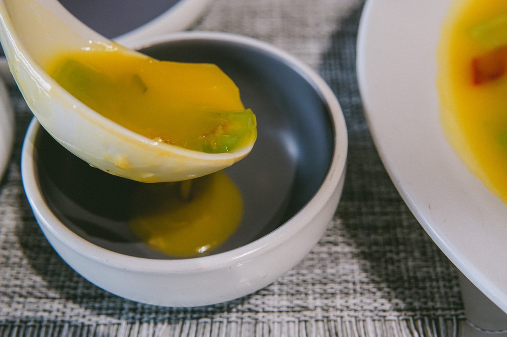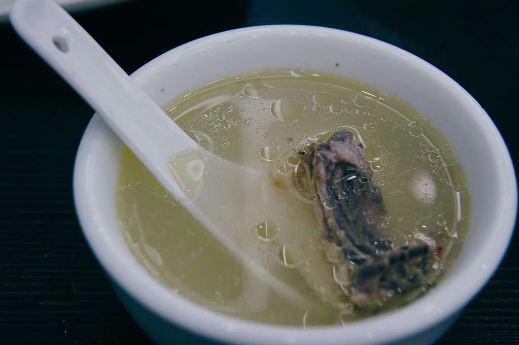 喝前先喝一碗原汁原味的椰子汤,润喉般的鲜甜,不一回功夫我们就把汤喝完了,除了证明 广东 人很爱喝汤,还能证明真的很好喝,老板对我们喝汤的速度也是非常迷。