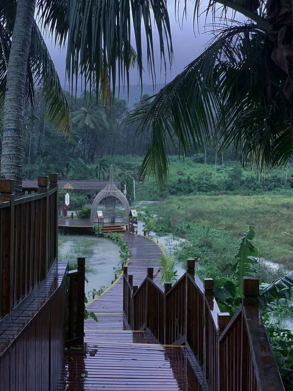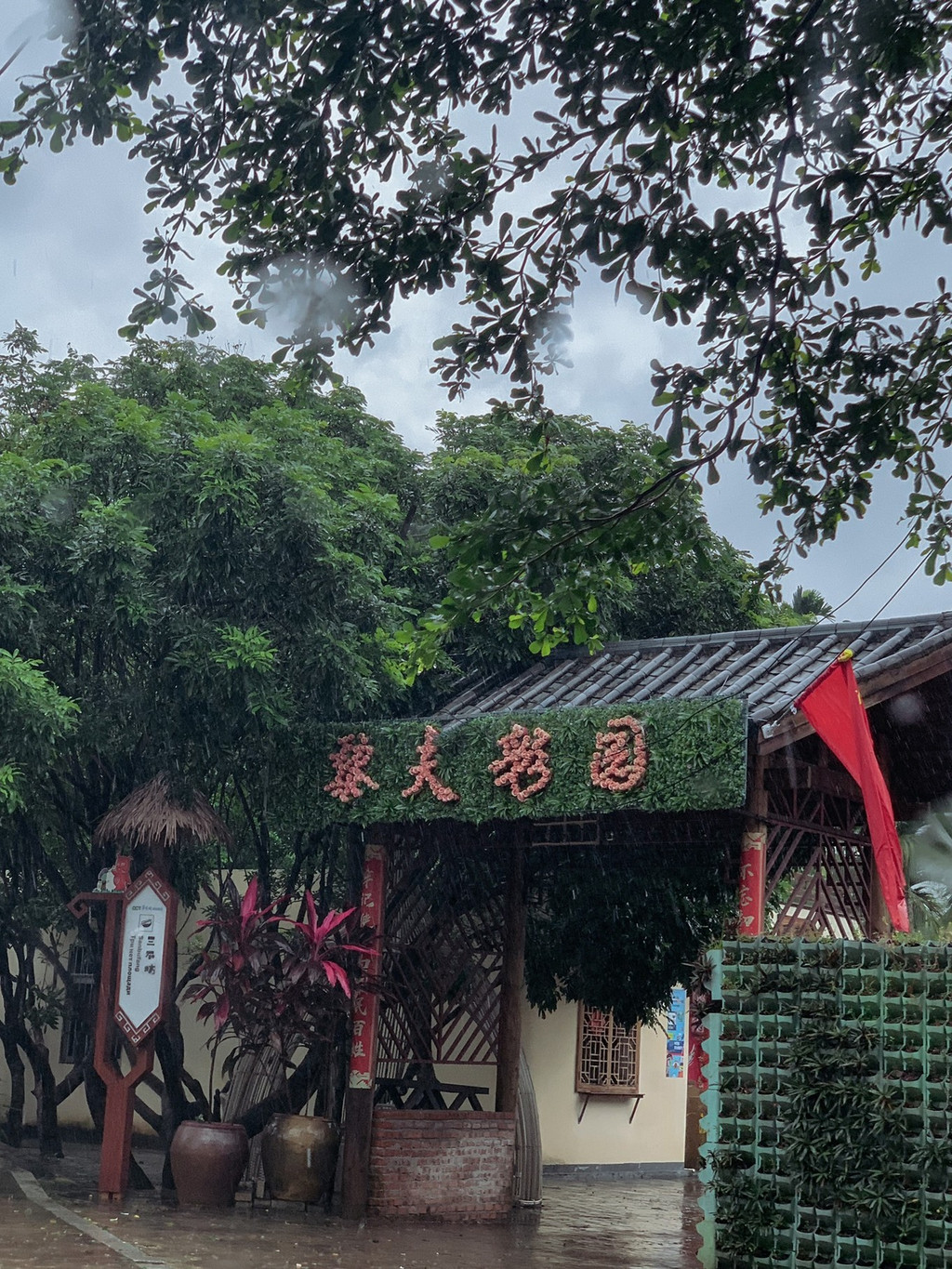 继续在发掘美丽乡村道路上越走越远,我们驱车来到中寥村,这是 三亚 第一个“五星级”美丽乡村,不知道是因为下雨还是小众,来这里的人非常少,而且村路四通八达,没有人引路的时候,我们自驾的车一不小心就开到了小泥路上,直到没有路,才发现自己走错了路。旅途的不经意,总是有很多小惊喜,这里最大限度保留着黎族的自然风貌,不砍树,不拆房,所见皆是传统,所见皆是融合。