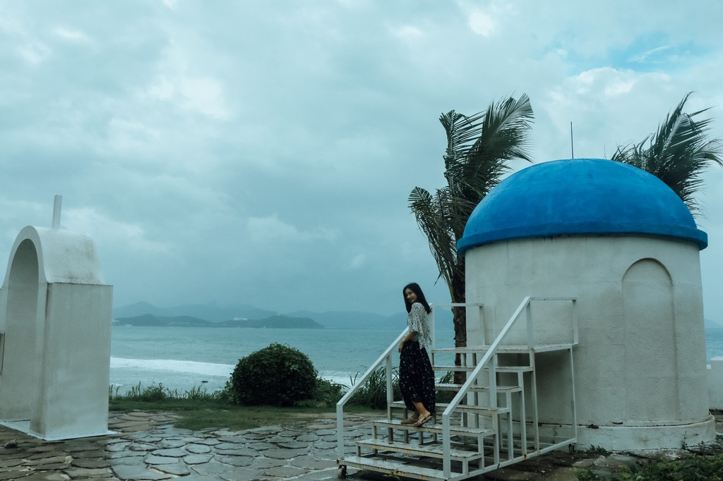 喜欢拍照的我,也不能错过这个0元小 东海 摄影基地,可惜上天就是不给力,又出来一阵乌风,又来一阵飘雨,这里的新人比在吉庆广场更拼,下雨天也认真营业,而我只想坐在车上静静看海怎么办~只是一场来到,不下来拍上几张,又说不过去。风这么大,雨这么漂,小木屋的我,已经尽我所能凹造型了,晴天的这里应该很不错吧,只是追风少女的我,刮来一阵狂风一阵雨,只求它停一下。