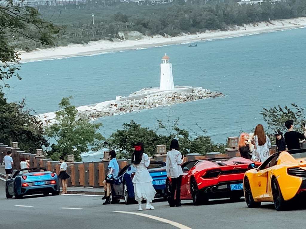 讨论疯狂的我们,主驾驶已经驶向网红公路的方向。其实在我们讨论的时候,已经有了想去打卡的心。10分钟后达到目的地,果然网红路想拍照也不是一件容易事,一排跑车已经停在绝佳拍照点,看样子是没有一个小时两个小时不会走的了。听说这条网红公路偶然还会有警察来赶人走,因为安全原因不给拍。
