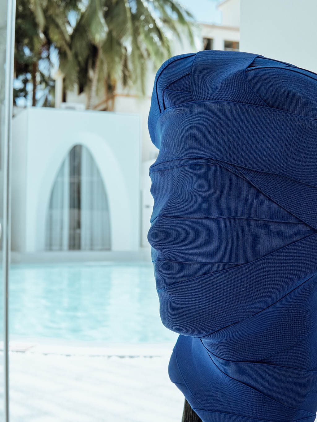 房子有配备杯子的xiaodu柜,蓝白风格的洗漱用具,浴袍软绵绵,质感好舒服,拉开窗帘就能看到蓝天白云泳池,在房间就很惬意