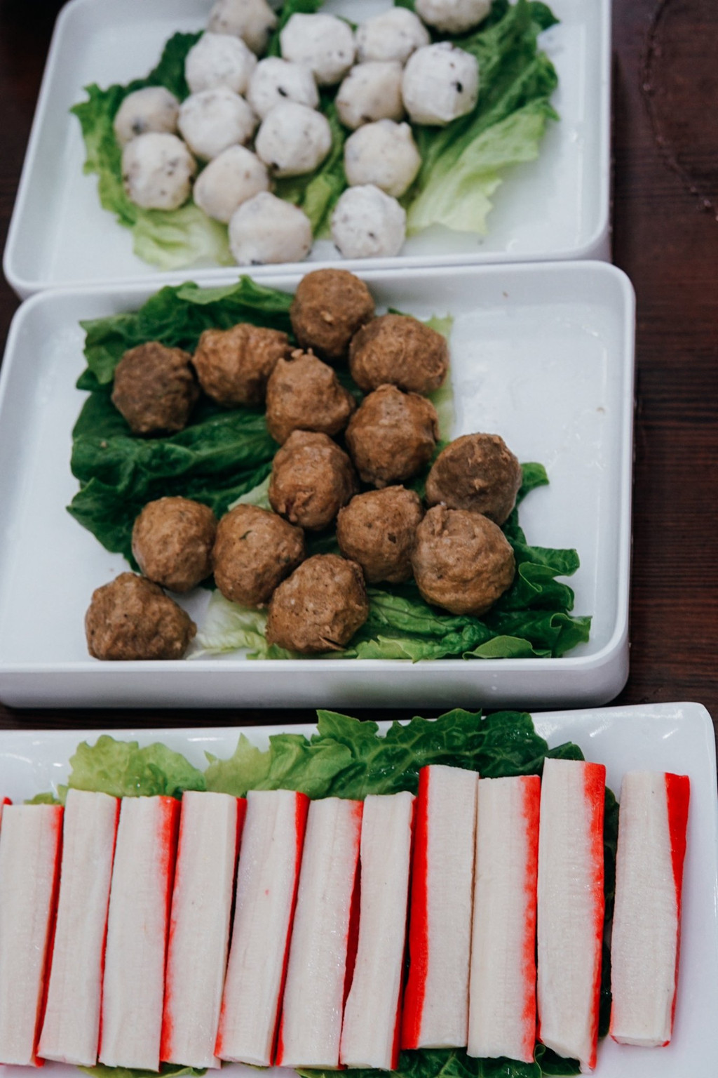 牛肉丸,香菇丸,海鲜蟹柳,通通都给点上, 广东 妹子很能吃的,虽然说 广东 人打火锅最爱放就是丸子,毕竟没有别的选择,