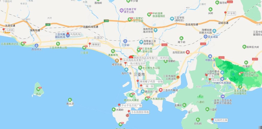 旧的网红之路拍照打卡实在太多车,我们最后还是选择逃离,吃饱饭再想我们下一步该怎么走吧。自驾之路从亚龙湾继续往大 东海 出发,在大菠萝吃午饭的时候,看了下导航,跟朋友说,这个大菠萝旁边有一条沿海公路也,我们要不要去看看~