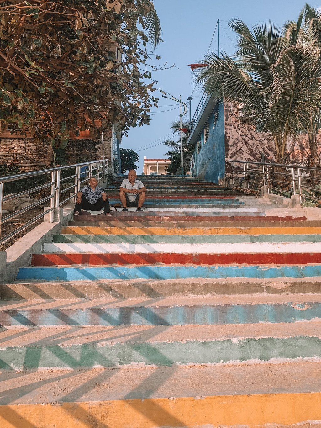 走进天涯镇,每条巷子都可以通向海边,一路走来这里的人儿都很惬意过着日子, 海南 的悠闲, 海南 的慢慢,从他们闲聊家常的搭聊看出,从老爷爷的暖心问候看出,我们想在墙下和壁画拍照,老爷爷专门在车子旁边看着,“上面装修会掉东西,不要过去”。