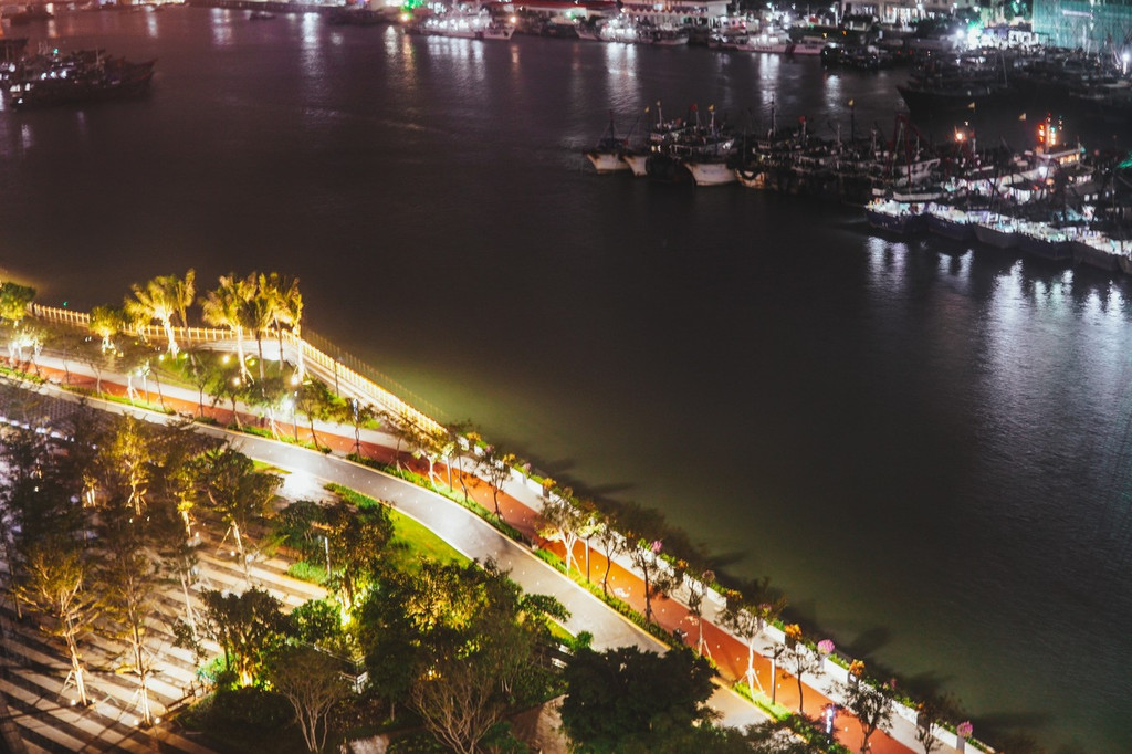 海口 没有夜景,我硬是挖了一个看夜景的角度,一看我还觉得有点像猎德大桥,不过桥下的散步/跑步步道还是挺惬意,只是今晚的风有点大,我有点凌乱,我还是赶紧回住宿地方,求求明天的晴空万里吧。