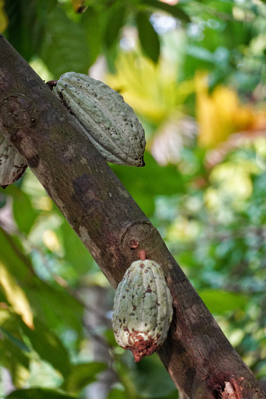 “你看这是什么?是可可树啊,这植物挺有意思,怎么果子长在树干上”