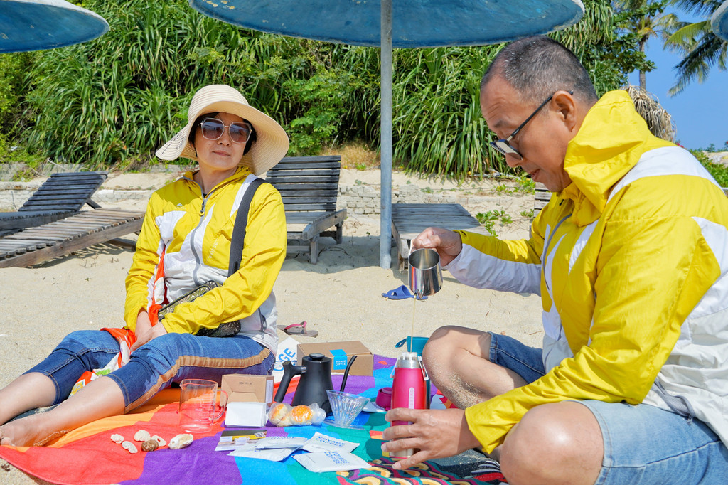 计划到天涯海角看日落,6点的日落,3点多我们就到了,外面有点晒,索性撑起小桌板,支起咖啡摊,晒着太阳喝杯咖啡再出发。突然有两个小时的时间可以浪费,仅供浪费。