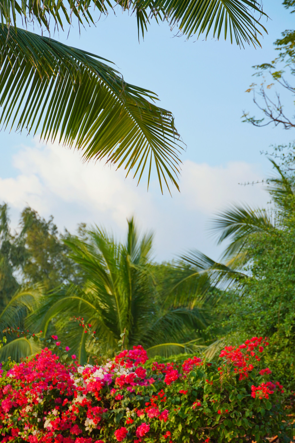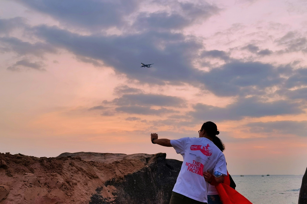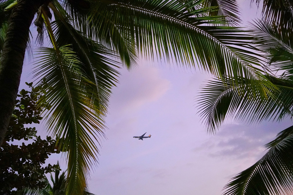 天涯海角在航线下,时不时就有飞机从头顶飞过,抓拍到很多架,藏在不同的树顶里。