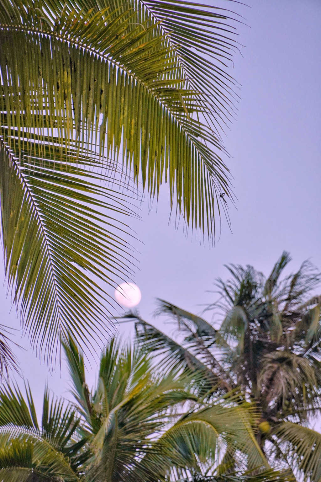 要离开的时候,抬头看到月亮挂在椰子树上,今天的月亮大概是清甜味儿的。