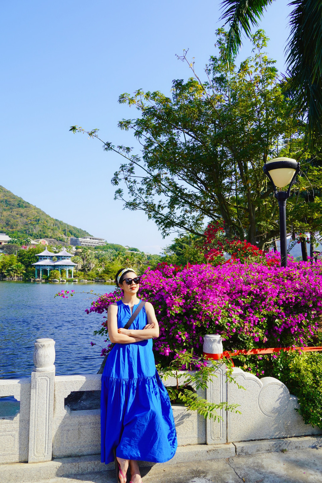 总体感受很值得来,景区视野辽阔,干干净净的,确实让人身心舒畅。从走进景区开始,就看到远处海的颜色明净透亮,巨大的观音像平静庄重俯瞰万物,向他走去的一路上点缀着各种色彩的花,树林茂密,亭台楼阁都很精致,像个海边的大花园。