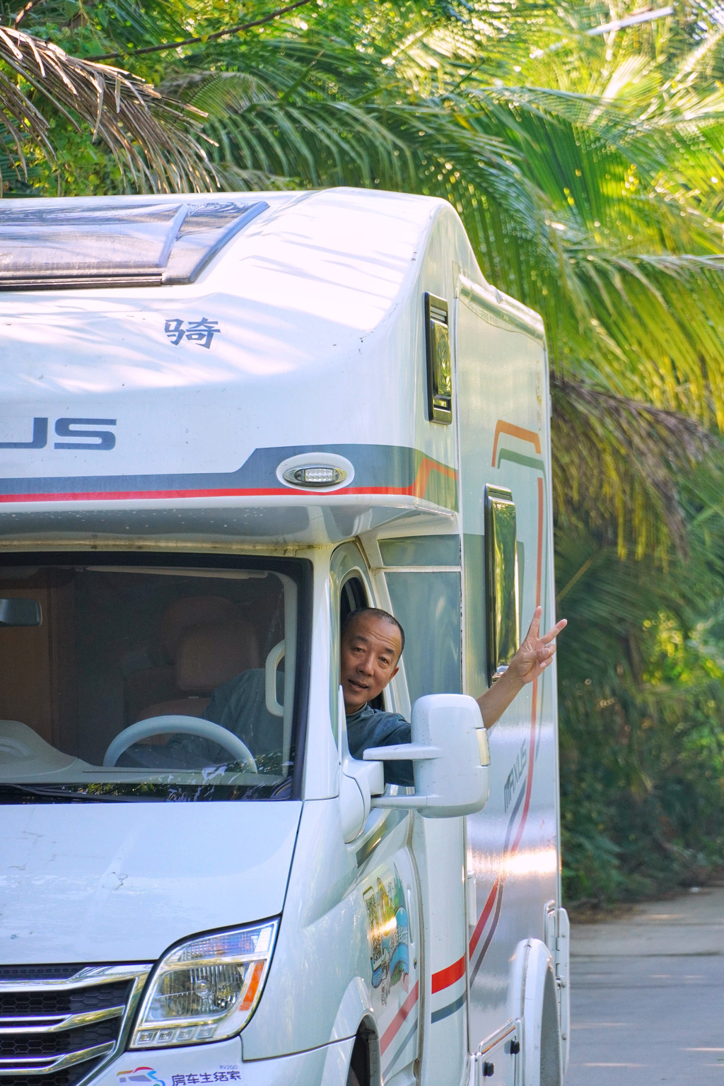 新朋友在阿里文娱上班,最近在海南出差,看到我们的贴纸很有趣就过来跟我们聊天,好奇的参观了房车,还问了很多关于隔壁老王的故事,最后以陈伟霆(是不是有点像)式的惊讶感慨道“你们一家人也太酷了吧!”