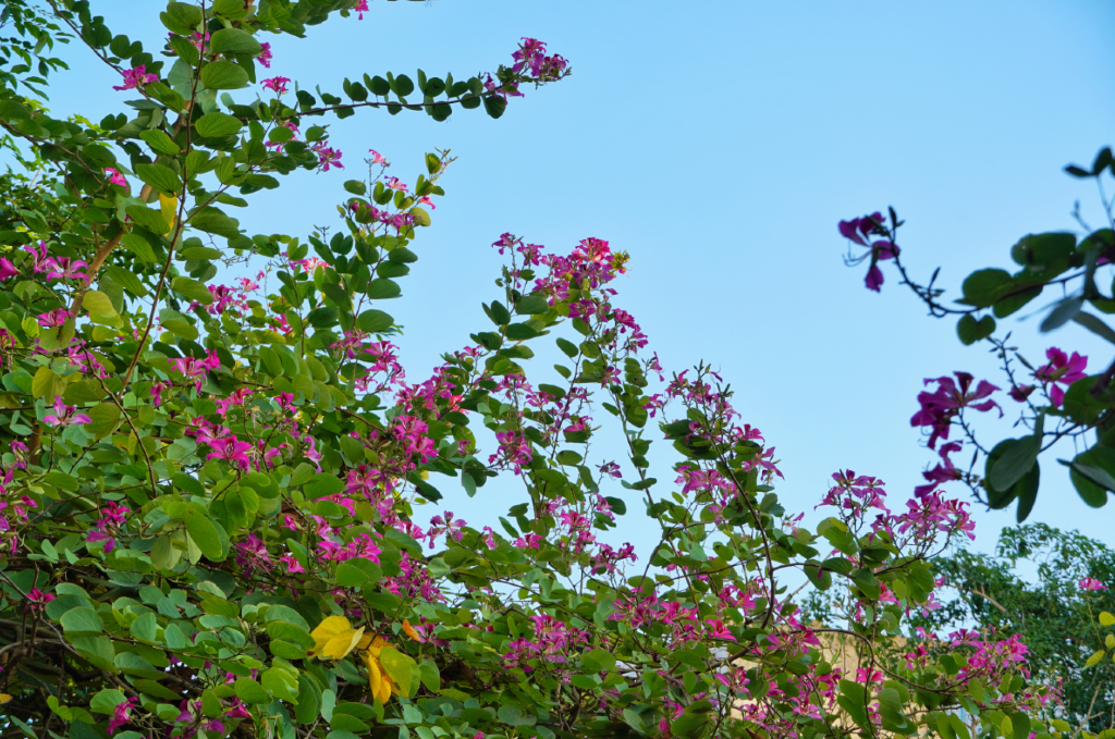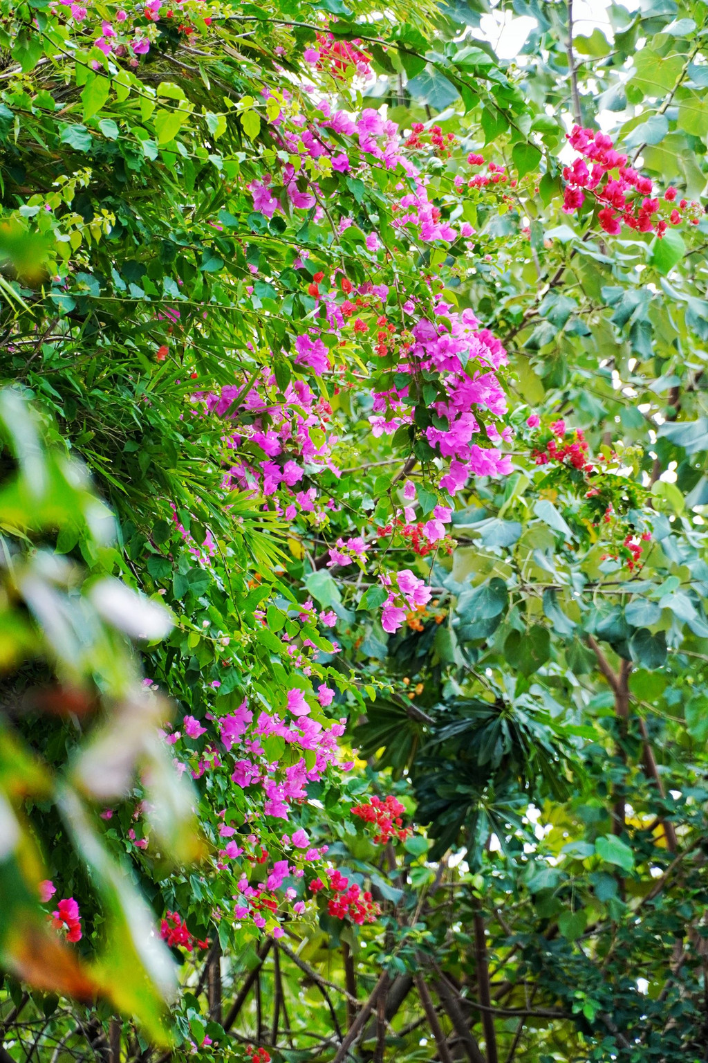 这棵树上开出了所有颜色的三角梅,像是随意泼洒颜料作出的油画,很美。