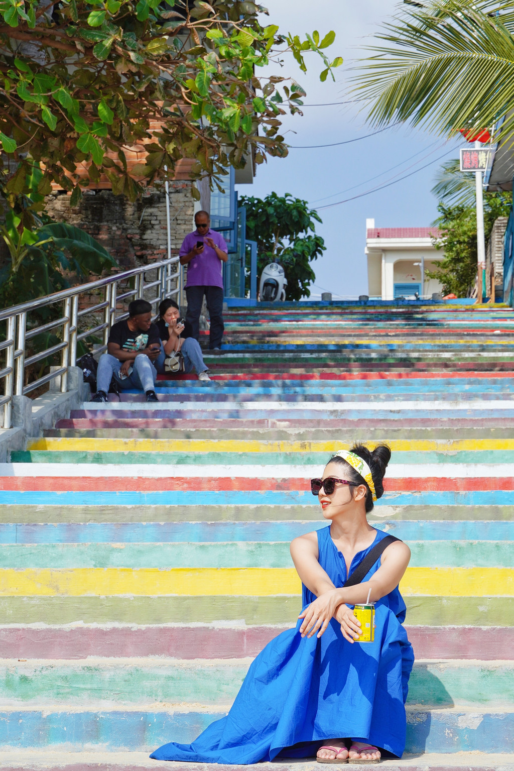 走到海边还能看到一条彩虹阶梯,拍照好看的,坐下来休息看海也很惬意。