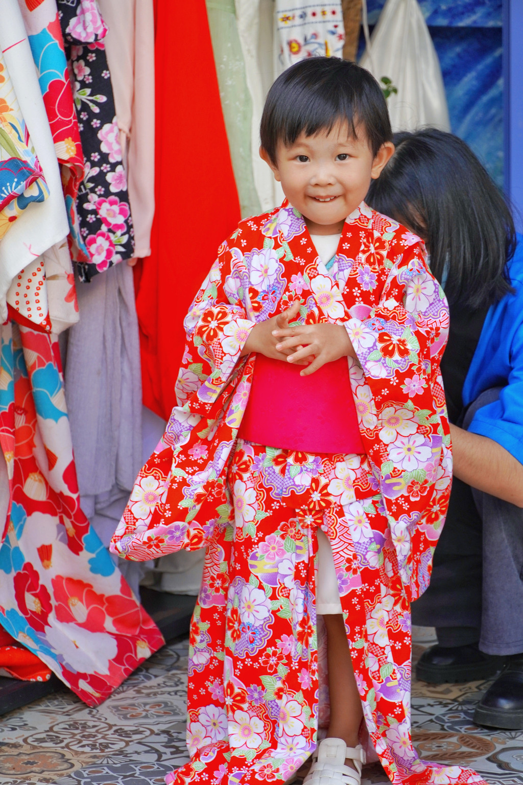 哈哈,幸福就是妈妈挥舞红丝巾,爸爸举起小相机。