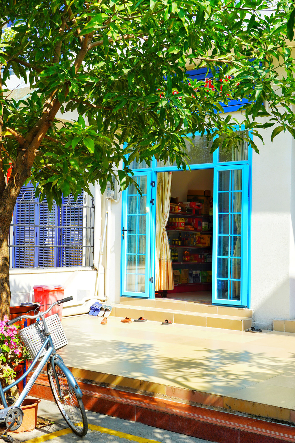 来之前听说这里是中国的圣托里尼,一听到这个说法还有点担心,怕又是一个复制出来的网红景点,没有什么生活气息。来过之后发现,这里被改造的很好,蓝白相间的街道漂亮干净,重要的是依旧居住着当地的村民。家家户户门口的鞋子、摩托车、吃饭的桌椅,好奇看着路人的小狗和被精心照料的花草,都是生活的痕迹。