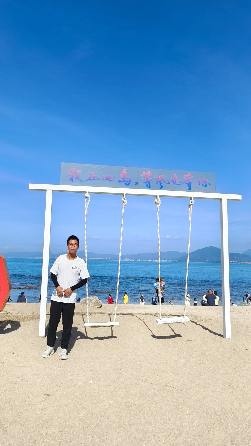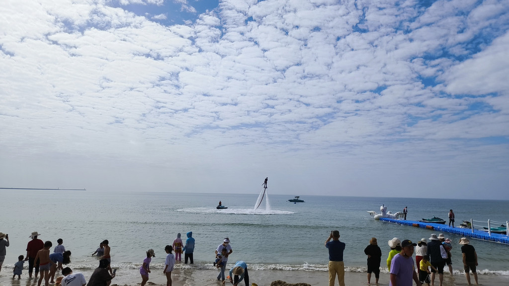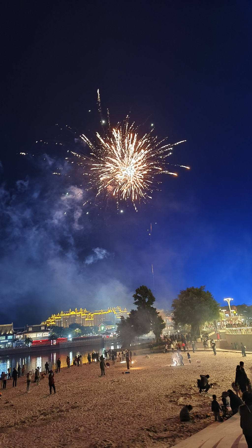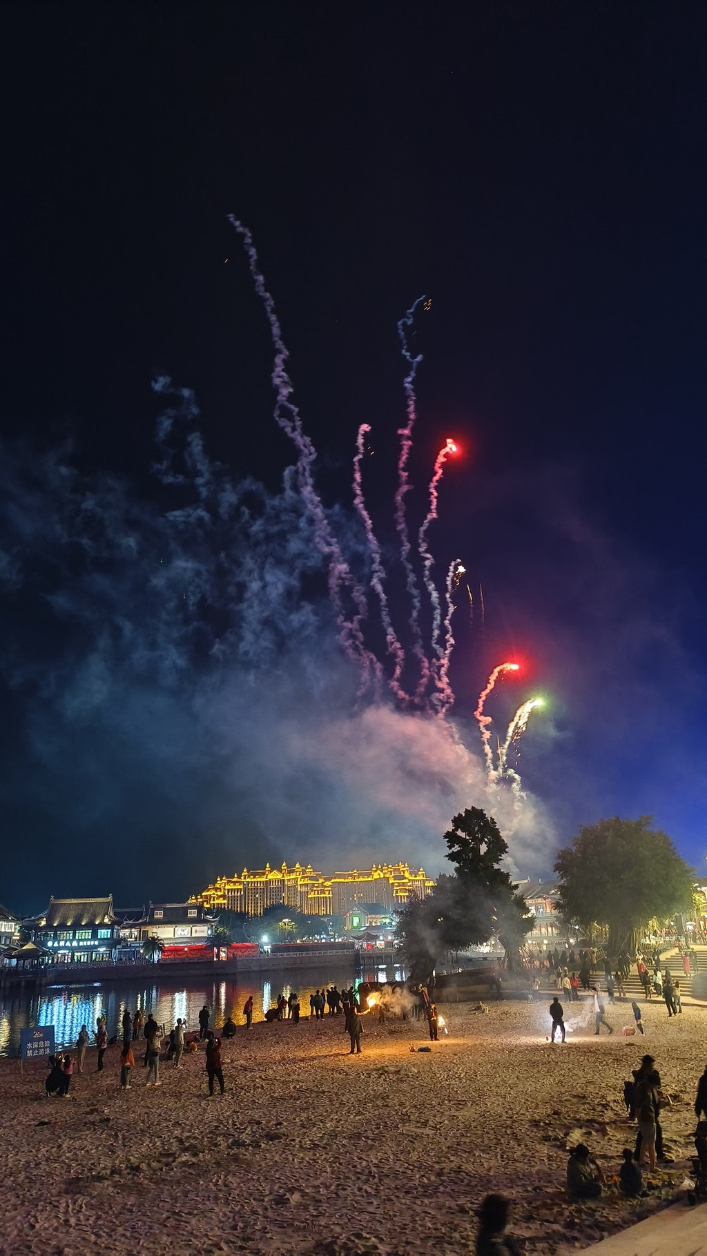 走出来之后,然后在沙滩上看见好多好多人在那里放烟花。然后出来打车没什么车了。等了十几分钟都没车。