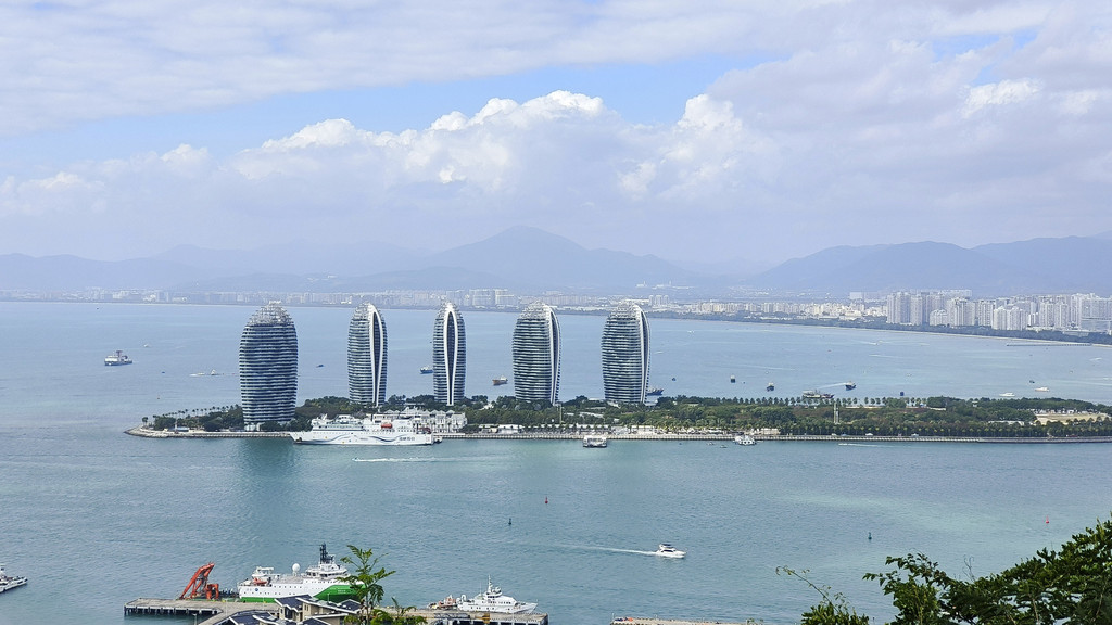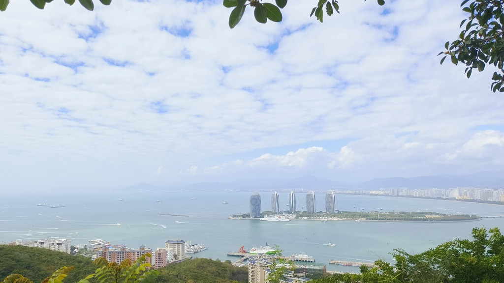 上面可以看到下面海上很大游艇,还有著名的凤凰岛。