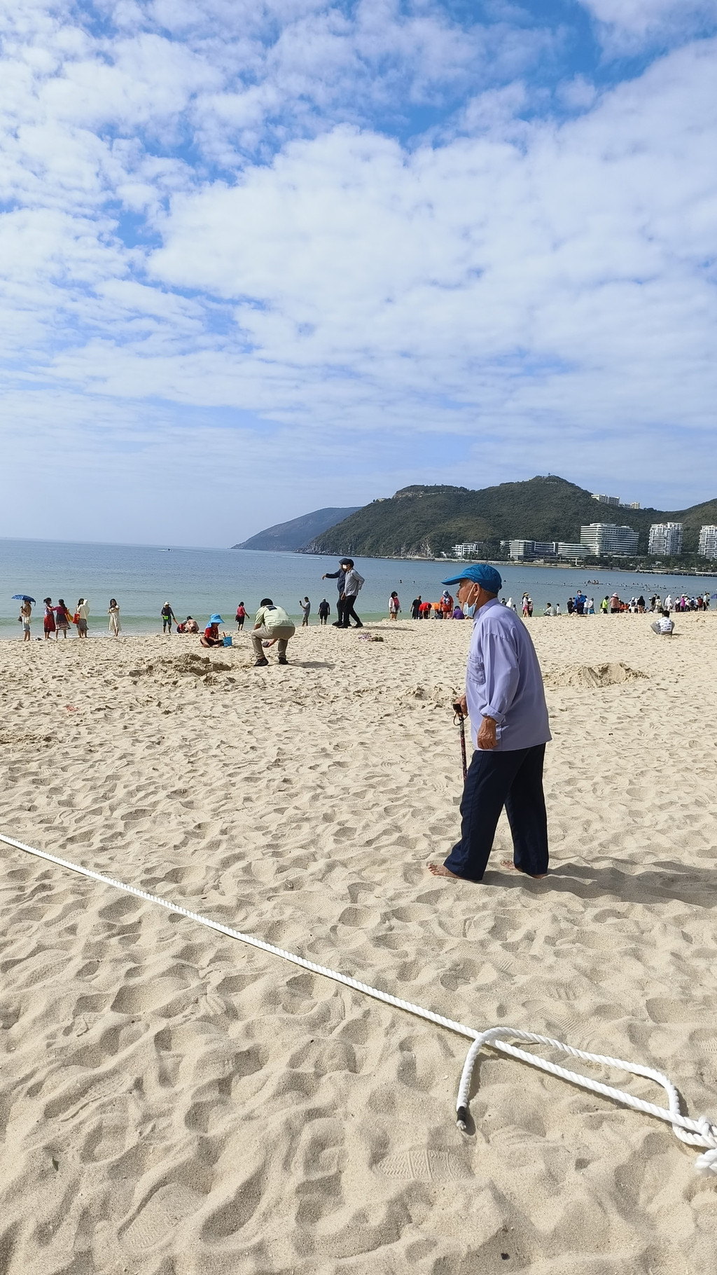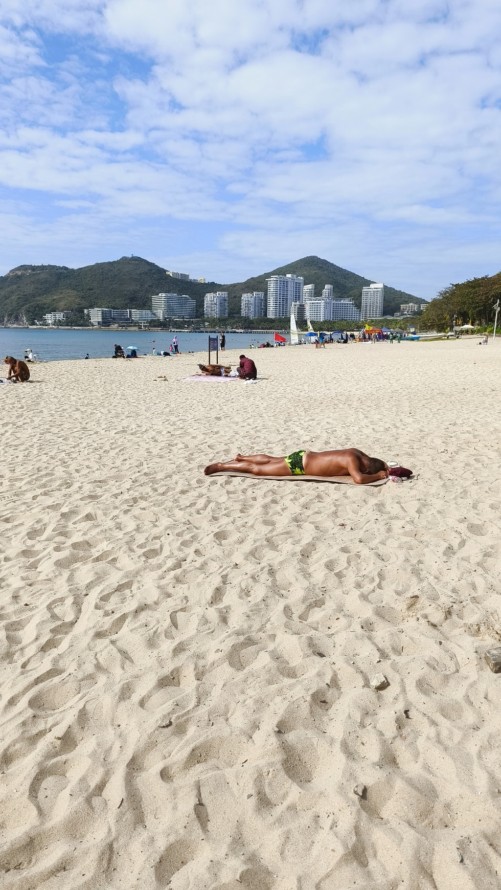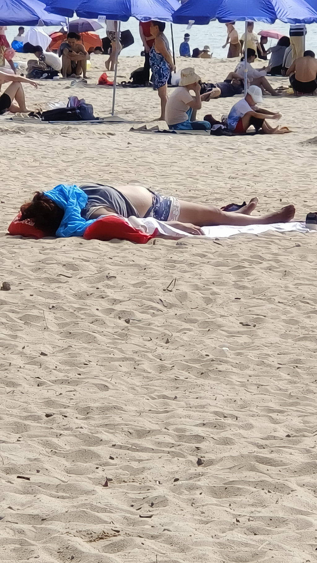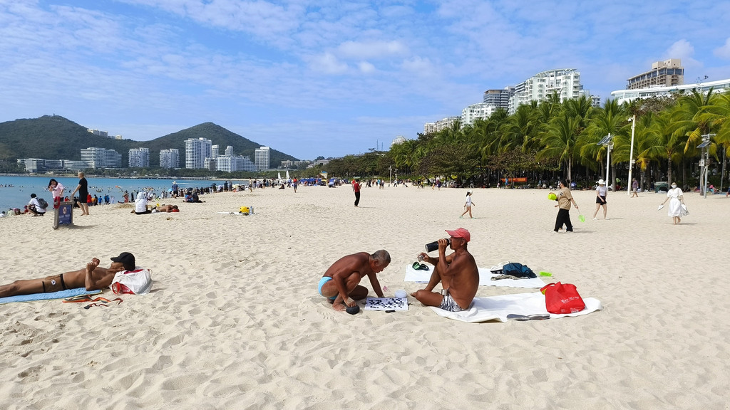 大东海沙滩晒晒太阳,人很多,很热闹,很多人在那里日光浴的。