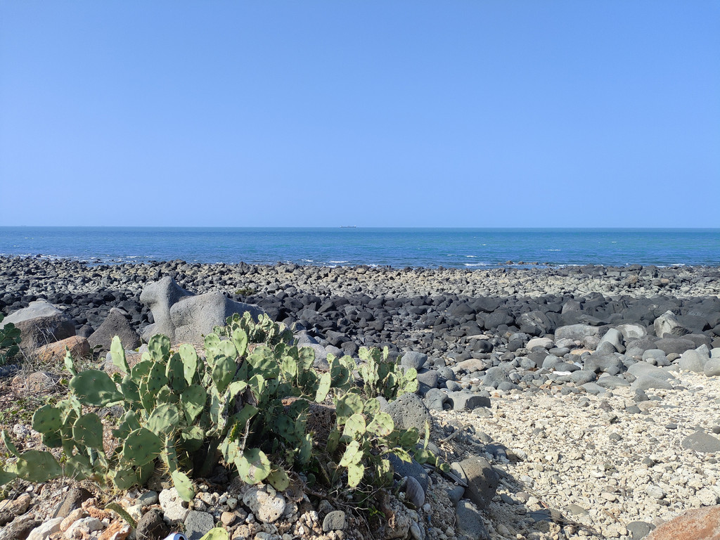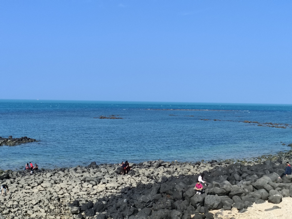 从临高离开走环岛旅游公路到峨蔓镇火山海岸省级地质公园。这段环岛旅游公路路况很好,风景很美。周边有黑色的火山岩和果冻一样的大海组成的风景,还有白色的巨大风车。沿路有观景台,可以停车去旁边欣赏风景,拍拍照片。附近有一些海岸可以早上赶海。
