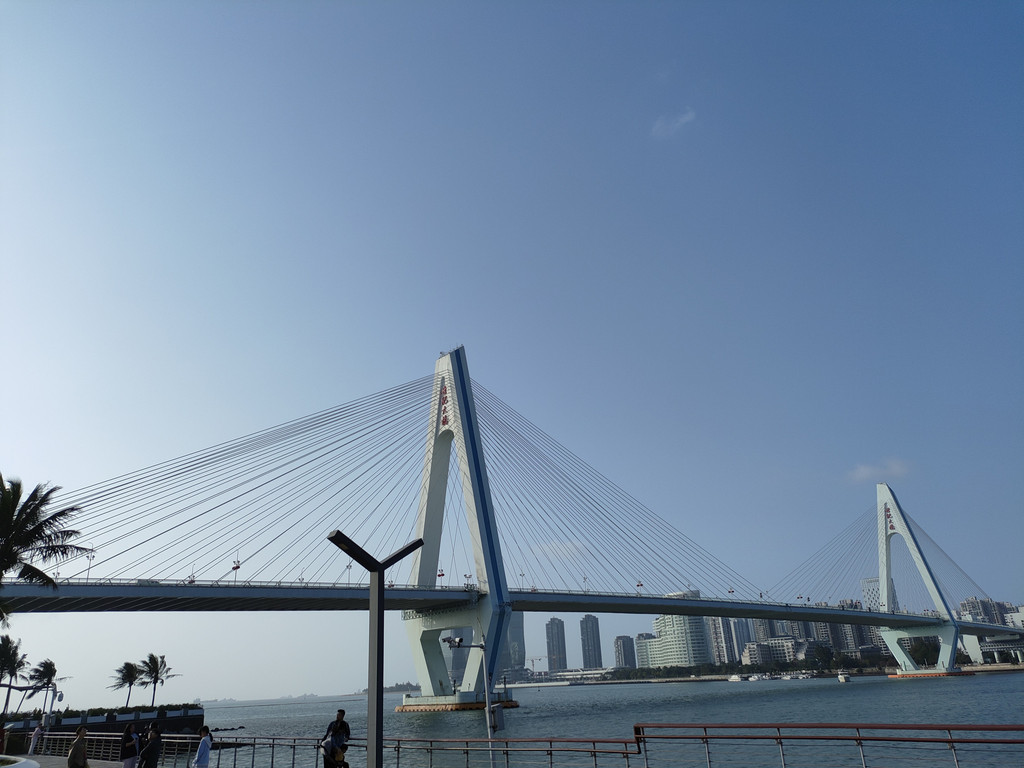 世纪大桥,傍晚风景很好,从世纪公园坐观景电梯可以上去。很多人在这边拍夕阳,可以俯瞰下面云洞图书馆、世纪公园和海。不过上面风比较大,注意保暖。