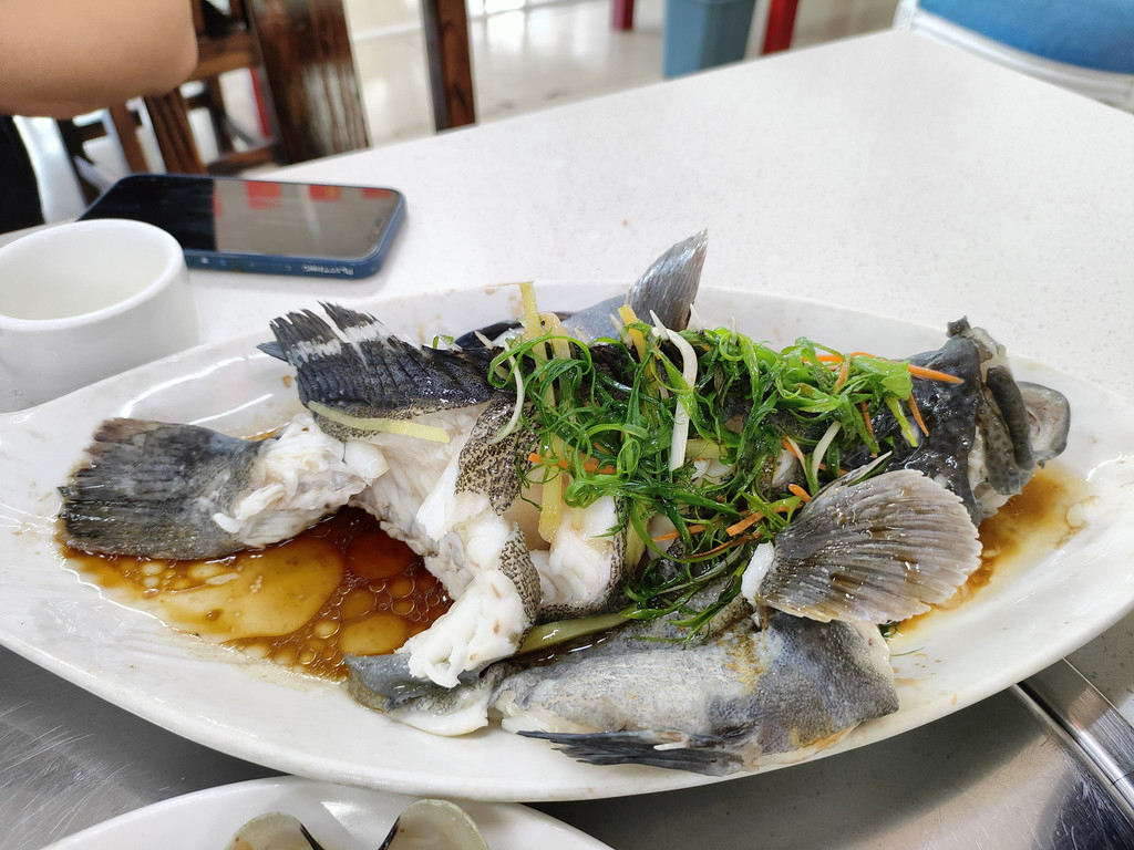 香水湾附近的一个小店,海鲜品质还挺好的。明档点餐。我们点了一斤基围虾、一条石斑、一斤花甲辣炒、一个咸鱼茄子煲。咸鱼茄子做的隐约有黄油香味。过节期间物价似乎比较贵。