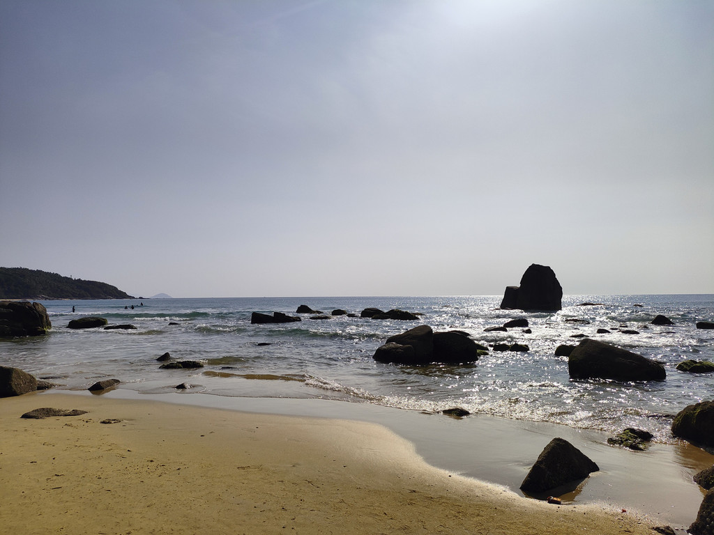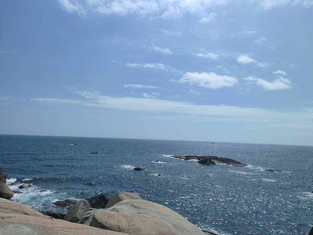 月亮湾。从铜鼓岭沿旅游公路走大约10~20km到月亮湾景区。车停在景区外面,走不远的一段柏油路就可以到海滩边。景色很漂亮,但是风浪很大。