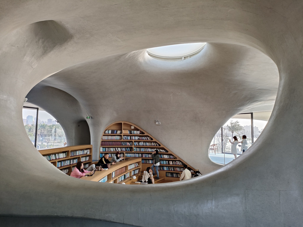 云洞图书馆是一个造型很好看的图书馆,需要在公众号上预约进入。每天现场也会放一些号,但整体上比较紧张。在门口扫码换鞋套就可以进去了,如果有带包包需要寄存或封存,也不能带食物和饮料入内。只有外面有一个小卫生间,状况堪忧,人也很多。图书馆内空间比较小,也没什么书。主要是二楼景色很好,适合拍照的地方。很多人在这边拍日落,但建议晚点再去,图书馆里打发不了太多时间。