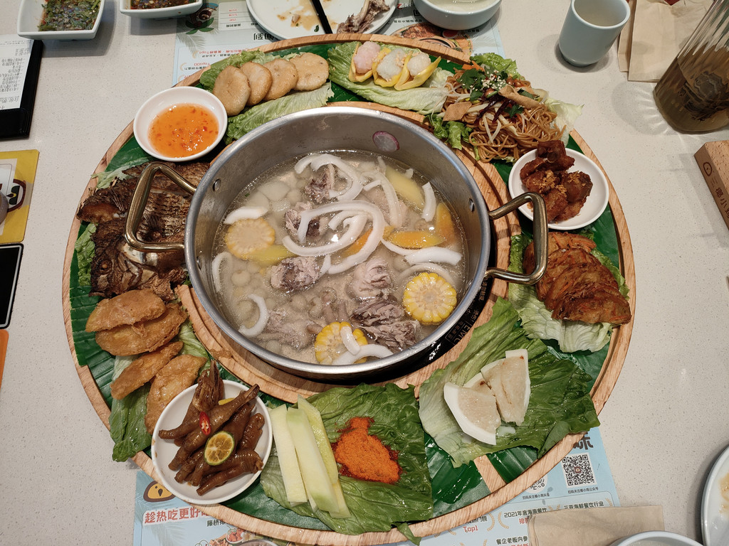 椰子鸡很好吃。椰子味道比较甜,不习惯吃太甜的锅底可以加矿泉水。店里有海南特色大转盘,除了海南粉不很合口味之外都挺好吃的。比较符合大众口味。套餐2人份分量比较足。