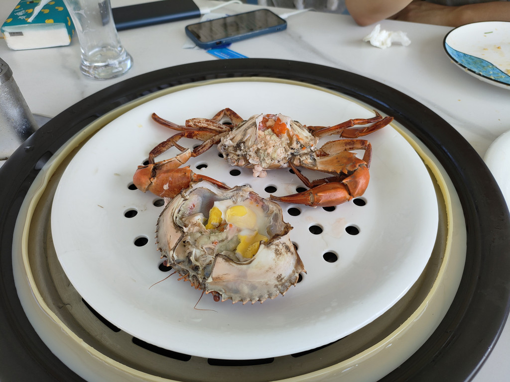 在神州半岛的一家蒸汽海鲜店。大众点评有团购。膏蟹、活虾、蒜蓉生蚝、贝类拼盘、肉末酿豆腐、蒜蓉娃娃菜、海鲜椰子饭。膏蟹很满很肥,非常推荐。活虾生蚝贝类都很好吃,其他的基本上是凑数的。提供的酒是比利时小麦精酿,但是不太好喝,普普通通。